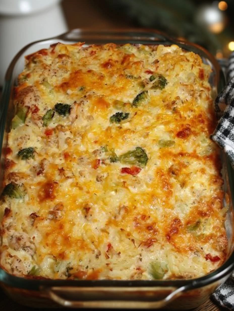 It’s the ideal breakfast for when you have relatives or visitors staying over and need something to feed everyone that doesn’t need a lot of effort or clean up. You may even brown the sausage ahead of time so that all you have to do in the morning is toss everything into the baking dish.