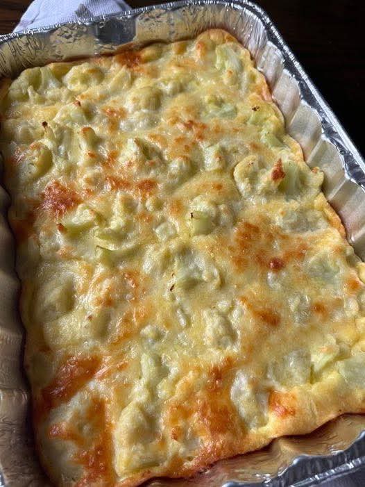Pour cheese mixture over the cauliflower and top with the remaining ½ cup parmesan.