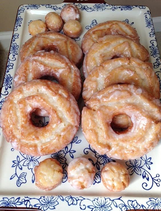 If glazing, whisk glaze ingredients and dip warm donuts into glaze. Let set before serving.