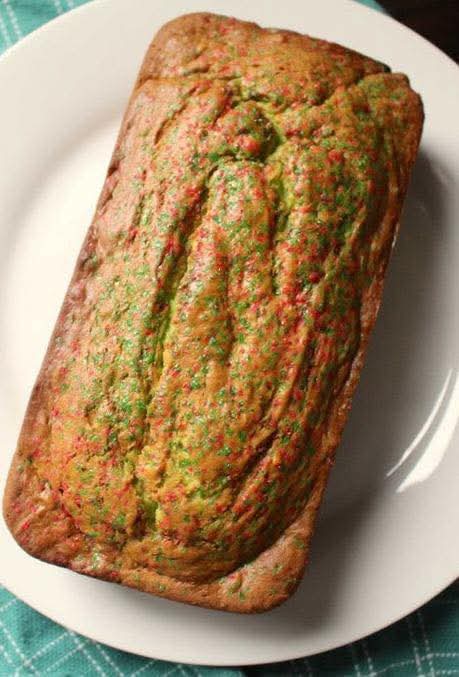 Transfer batter to the prepared loaf bans and top with sprinkles.