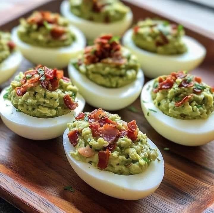 The ultimate fusion appetizer that brings together two classic favorites! These deviled eggs are filled with a creamy, flavorful avocado mixture, topped with crispy bacon and a sprinkle of chili powder. They’re surprisingly easy to make and are guaranteed to be the star of any party or potluck.