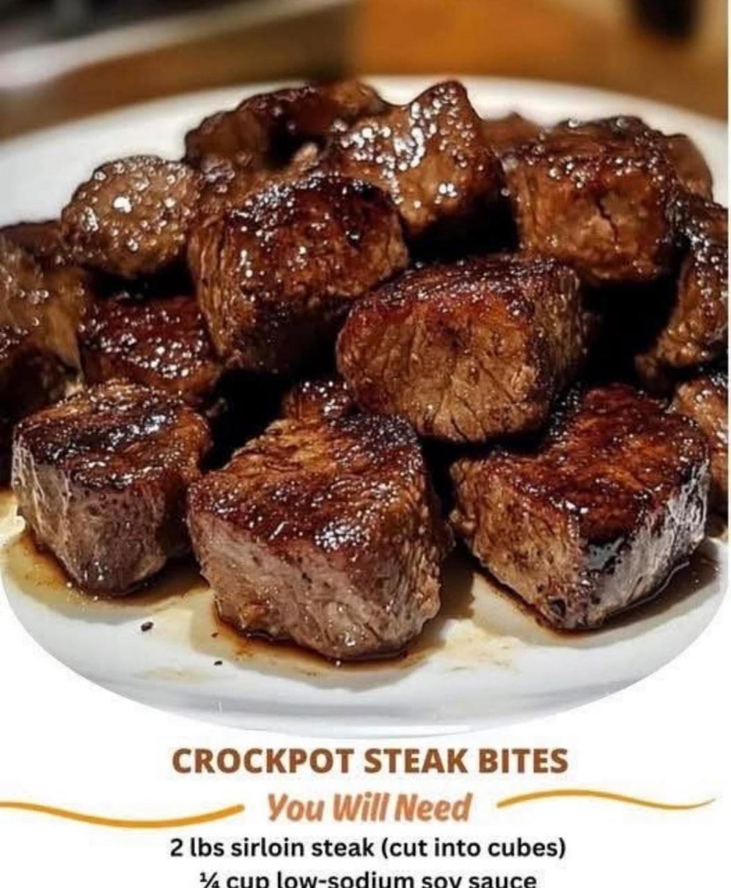 These easy slow-cooked steak bites are savory, tender, and bursting with flavor. Cooked low and slow in a rich soy-Worcestershire-garlic sauce,