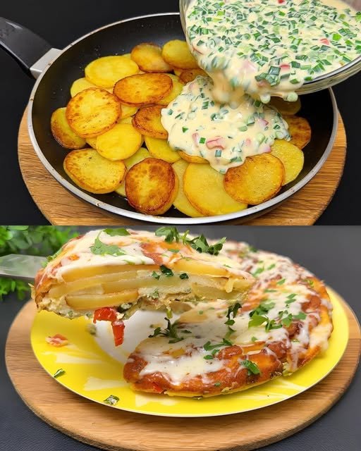 This comforting potato and egg dish is inspired by classic potato frittatas and Spanish-style tortillas. It transforms simple ingredients into a warm, filling meal with a golden top and tender inside.