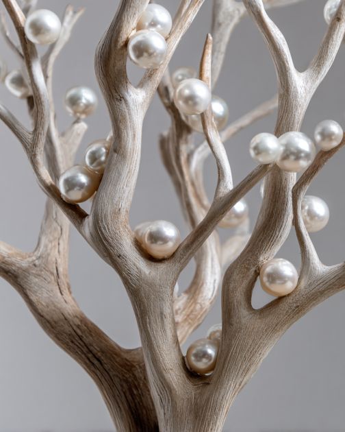 Wrap the wired pearls around the branches, spacing them irregularly for a natural, organic look.