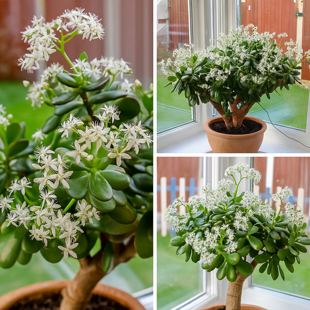The Jade Plant (Crassula ovata) is not only prized for its lush, succulent leaves and bonsai-like shape but also cherished as a symbol of prosperity and good luck. While it’s commonly grown for its foliage, many plant lovers don’t realize it can bloom—producing delicate, fragrant, star-shaped flowers with white petals and a soft hint of purple.