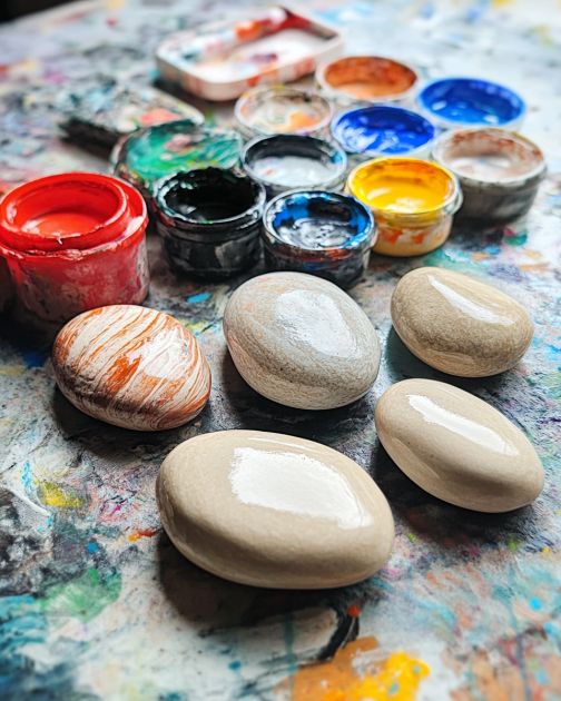 Place your painted rocks strategically among your plants for easy identification and maximum visual impact. Choose colors and designs that complement the natural tones of your garden. For a cohesive look, stick to a consistent color palette or design theme—think floral motifs, geometric patterns, or botanical illustrations. You can even bring the charm indoors by using these markers in potted plants, arranging them on windowsills or shelves to add a playful, decorative touch to your home.