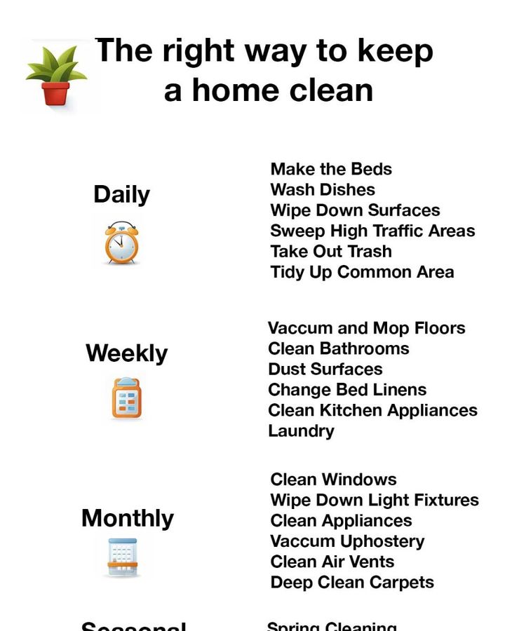 This guide breaks down the cleaning tasks into daily, weekly, monthly, seasonal, and yearly chores to help you stay organized and keep your home sparkling clean.