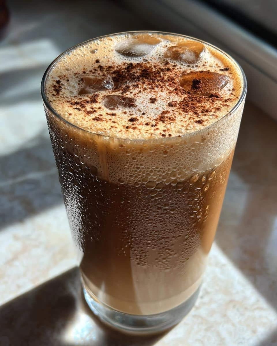 Description A refreshing twist on classic tiramisu, this iced coffee combines rich espresso with creamy mascarpone and a hint of cocoa for a delicious drink. Ingredients 1 cup strong brewed espresso, chilled 1/2 cup milk 2 tbsp mascarpone cheese 1 tbsp sugar 1/2 tsp vanilla extract Ice cubes 1 tbsp cocoa powder for garnish Instructions