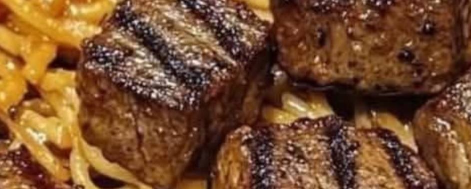 Sizzling Garlic Butter Steak Bites with Creamy Spaghetti .