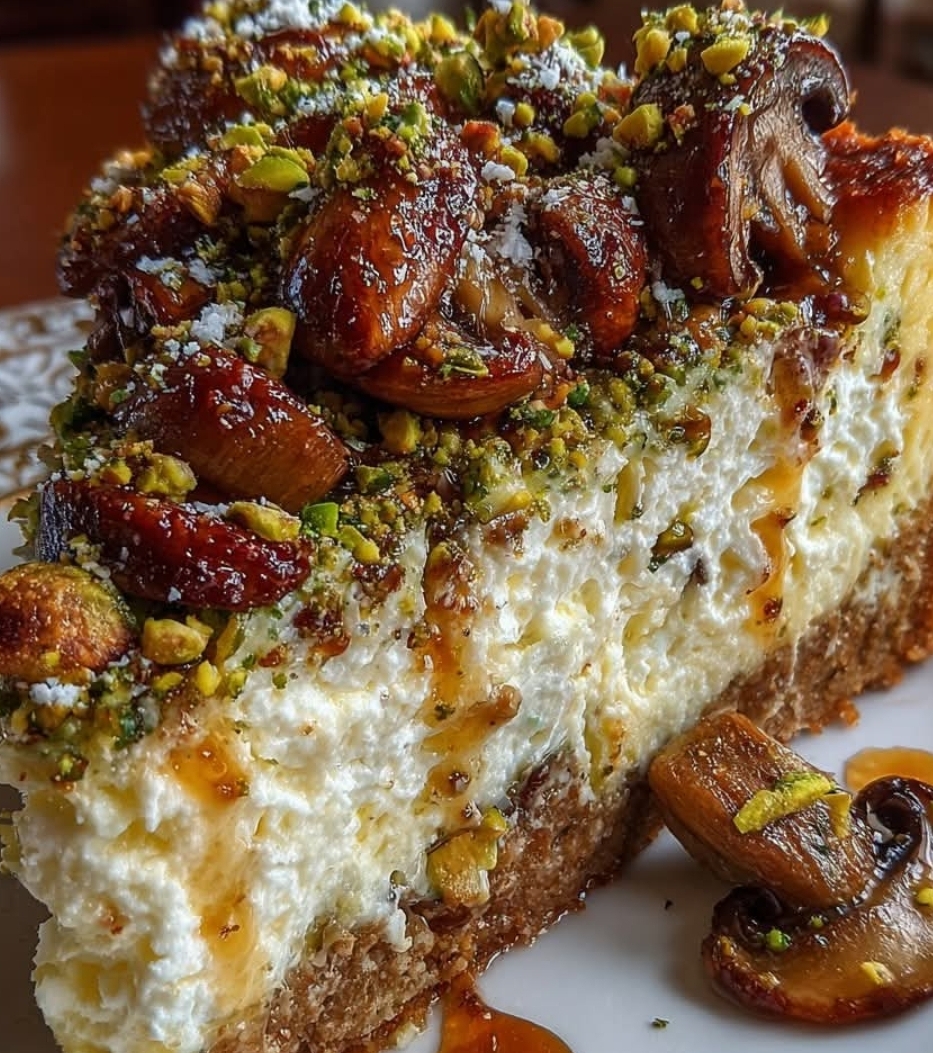 Pistachio and Mushroom Cheesecake with Feta & Parmesan Crust Ingredients: For the crust: ½ cup (50 g) grated Parmesan cheese ½ cup (75 g) crumbled feta cheese 1 cup (90 g) pistachios, finely chopped 2 tbsp (30 g) butter, melted Pinch of salt For the filling: 200 … Read more